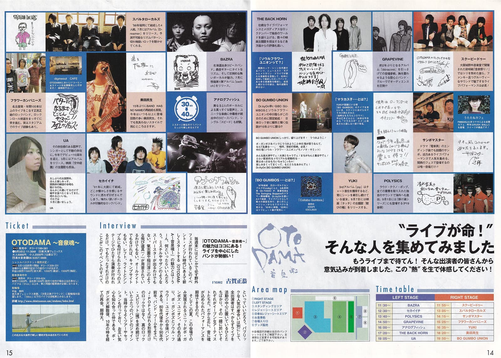 『ぴあ関西版』創刊20周年を記念したコラボイベント「OTODAMA~音泉魂~」が、野外会場「泉大津フェニックス」にて開催された。奥田民生やBO GUMBO UNION、YUKI、フラワーカンパニーズ、サンボマスターなどそうそうたる14組のアーティストが出演。またプレイベントとして、6月4日には大阪城野外音楽堂で「音泉祭り!」が、7月23日にはバナナホールで「OTODAMA~掛け湯シリーズ①」なども開催され、イベント当日に向けて参加者の気分を盛り上げた