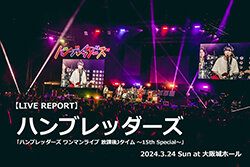 ハンブレッダーズ…写真左より、ukicaster(g)、ムツムロ アキラ(vo&g)、木島(ds)、でらし(b)による大阪出身の4人組ロックバンド。高校1年生になった’09年、文化祭に出演するために結成し、“音楽ってヤバいな”と気付きバンドを続けることに。’20年2月にメジャーデビュー後も、ライブシーンを中心にメキメキと成長し、若い世代を中心に全国各地老若男女幅広くファンを拡大中! 結成15周年を迎えた’24年には、3月に初の大阪城ホール、10月に初の日本武道館公演を実施。’25年10月15日には新曲『ちょっとロンリー』をリリース。10月19日には大阪城ホールで初の主催フェス『GALAXY PARK』を開催した。'26年5月24日(日)には万博記念公園 もみじ川芝生広場で『GALAXY PARK in EXPO』を開催予定。