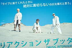 リアクション ザ ブッタ…写真上より、木田健太郎(g)、佐々木直人(vo&b)、大野宏二朗(ds)。’07年結成、埼玉県発スリーピースバンド。10代の頃からバンド選手権で入賞を重ね、数々の大型フェスに出演。’22年より続々とタイアップに抜擢され、TikTokを中心に“共感できる恋愛ソング”として『ドラマのあとで』(’17)が話題に。Spotify日本のバイラルチャートで24週連続チャートインし最高位7位にランクインし、今もなお広がり続けている。'24年5月には、初のベストアルバム『REACTION THE BEST』をメジャーリリース。’25年10月29日には、最新作となるデジタルEP『still e.p』を配信した。