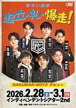 関西から誕生したボーイズユニット「GAKURAN-BOYZ」が、2月28日(土)開幕のお披露目公演GAKURAN-BOYZ vol.1~学ラン騒ぎ~「起立・礼・爆走!」に向けて動き出した。"芝居・ダンス・ラップなどあらゆる表現で心を動かすエンタメ集団"を掲げ、トレードマークは学ラン。関西在住の10〜20代を対象にオーディションを実施し、7名が集結した。コンセプトは「頑張る姿を通じて、あなたを応援する」。デビュー公演に向けて奮闘する稽古場を訪れた。