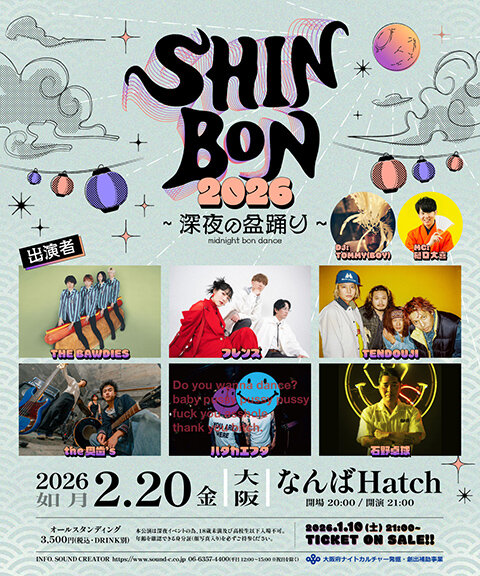 2月20日(金)なんばHatchにて開催される深夜の⾳楽イベント『SHINBON 2026 ~深夜の盆踊り~』にライブモニターとして10組20名様をご招待!