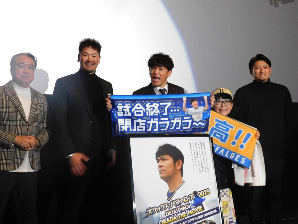 松竹芸能に所属する漫才師で二代目「M-1王者」、芸能界随一のオリックス・バファローズファン岡田圭右(ますだおかだ)による、2025年シーズンの一喜一憂ぶりと今シーズンを象徴する劇的な試合映像をもとに、今シーズンを熱く締めくくる新感覚のドキュメントムービー『オリックス・バファローズ2025 ~DETA!WAO!OKADA THE MOVIE~』が、イオンシネマ シアタス心斎橋、イオンシネマ茨木ほか全国にて上映中。