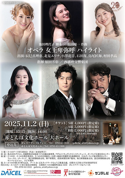 ホーム > NEWS > 池田理代子脚本、薮田翔一作曲の オペラ『女王卑弥呼』ハイライト演奏会が 『たつのアート 2025』の関連イベントとして上演!