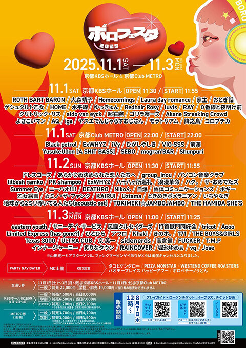 11月1日(土)から3日(月・祝)までの3日間、京都KBSホール&京都Club METROで開催される『ボロフェスタ2025』。いよいよ今週末に開催が迫っている本公演の追加出演者が発表された。