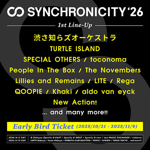 2026年4月11日(土)、12日(日)に東京・渋谷にて開催の都市型フェスティバル『SYNCHRONICITY'26』の第1弾ラインナップが発表となった。