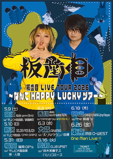 そんな板歯目が、4月22日(水)にリリースする2nd EP『なんてHAPPY LUCKY』を携えた、全国ツアー「板歯目 LIVE TOUR 2026 ~なんてHAPPY LUCKYツアー~」は只今、一般発売中! 5月から開催される今回のツアーは、全国8都市を巡るツアーで、ツアーファイナルとなる東京・渋谷O-WEST はキャリア最大キャパシティとなるワンマン公演となっている。