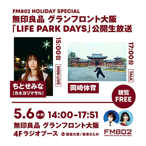 ホーム > NEWS > 無印良品グランフロント大阪から公開生放送。 カネヨリマサル・岡崎体育の生出演も決定!