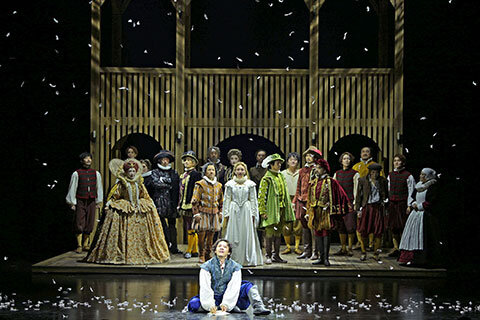 演出の青木が今作を「深く、新しく、そして軽やかにいきたい」と言う舞台は、グローブ座をモチーフにしたセットを人力で動かし、音楽とともに物語が進んでいく。「巧みな構成で、観ていて迫力があります。フィクションでありながら、シェイクスピア自身の人生や当時の劇場文化を、史実を踏まえてリアルに描き、その中で演劇が生まれていく瞬間をお客様が覗いているような感覚になれる芝居。シェイクスピアの美しい言葉を織り交ぜ、美しい男性 4重唱や笑いどころもあって軽快なテンポで流れていくので、ストレートプレイを観慣れていないお客様でも、物語が進むにつれてその中に没入できるような感覚で楽しんでいただける作品になっていると思います」。シェイクスピア作品を知っている演劇ファンにとっては、楽しさ倍増の芝居でもある。「この作品の、人を愛する喜びや演劇への愛、情熱を、京都でより深くお届けできたらと思っています。ぜひ劇場で体感していただけたらうれしいです」。